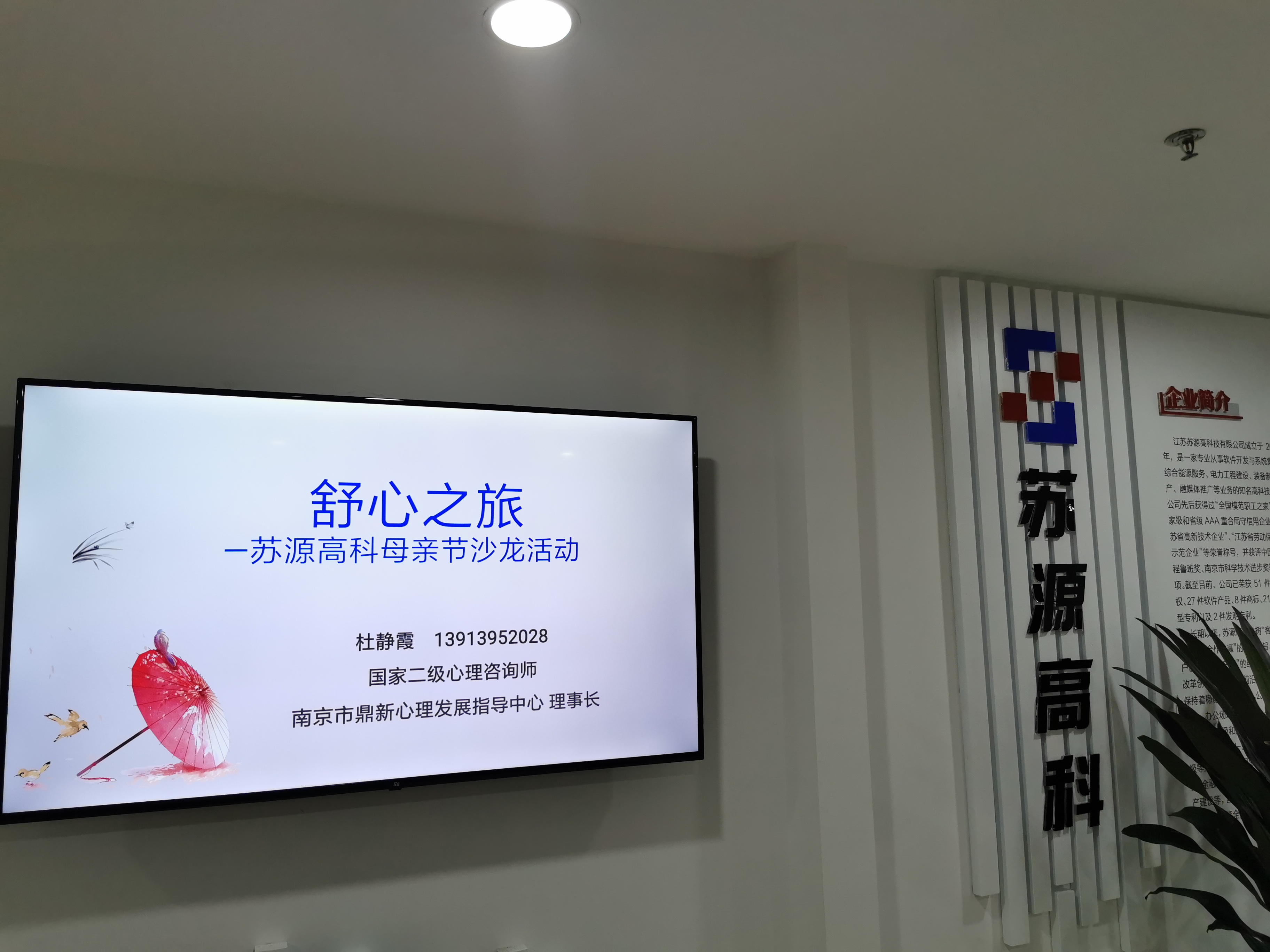 為緩減女職工心理壓力,培養女性自尊、自愛、自信、自強的精神風貌。在“母親節”即將到來之際,公司黨支部攜手工會聯合開展 ——“關愛母親,心理減壓”舒心之旅活動。旨在讓女職工更好地了解自己當前的壓力指數,在專業老師的帶領下分析壓力主要來源, 了解自我減壓方法,體驗放松。塑造陽光心態,打造幸福生活,蘇源高科祝天下所有的母親,節日快樂!永遠幸福!